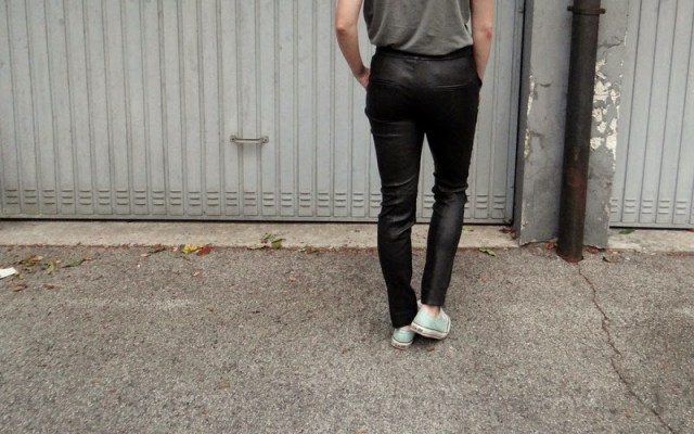Gut Ding will bekanntlich Weile haben. Und so erging es mir auch bei meiner Suche nach einer passenden Lederhose. Schwarz, schlicht, eng sollte sie sein, und, wenn möglich, natürlich keinen Krater in meinen Geldbeutel reißen. Klingt nicht gerade nach einem einfachen Unterfangen. War es auch nicht. Doch nach vielen missglückten Versuchen wurde klar, dass es lohnenswert sein kann, sich in Geduld zu üben. (So öde und wenig lustig das auch manchmal sein mag.) Die perfekt Lederhose wurde gesichtet, bestellt, anprobiert und gekauft. Whoop Whoop!