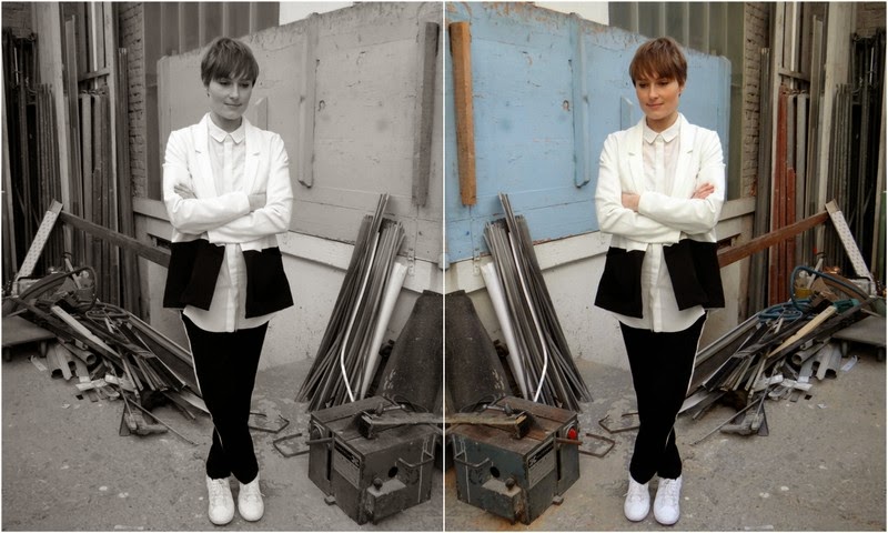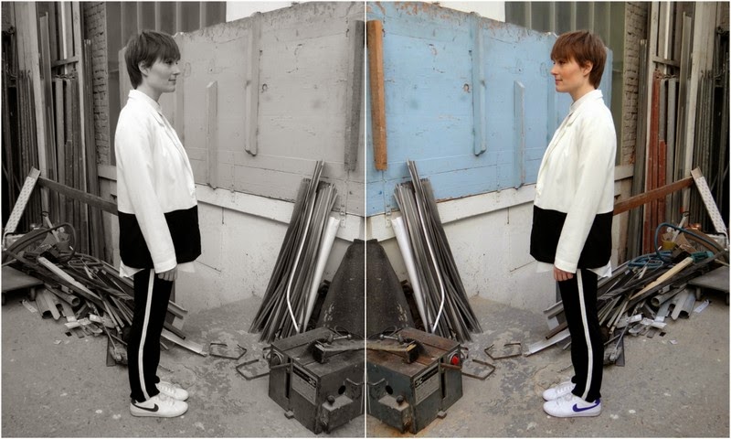 Blazer: secondhand / Hemd: Monki / Hose: Holy / Schuhe: Nike