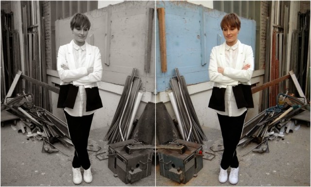 Outfit / In schwarz-weiß in der Werkstatt
