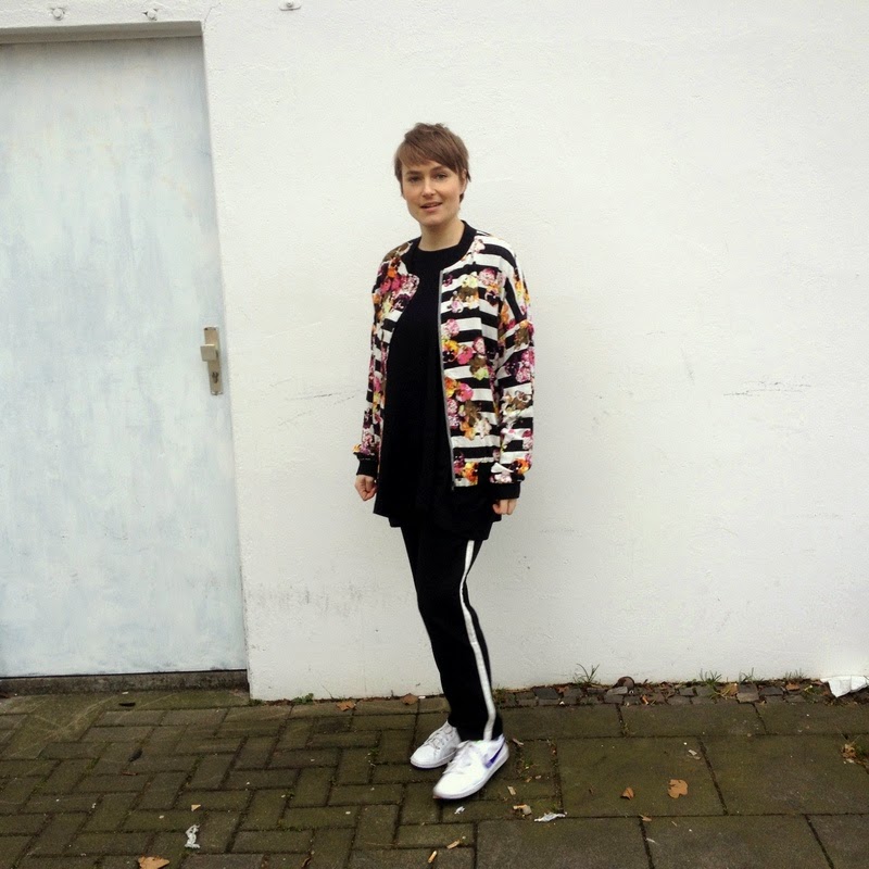 Es ist wohl oder übel lästige Wahrheit, dass der Frühling noch auf sich warten lässt. Somit bleibt einem nichts anders übrig, als die eigene Stimmung mit anderen Mitteln zu heben. Und wenn man dabei legal bleiben möchte, muss man sich Alternativen überlegen. In diesem speziellen Fall ist es meine Jacke von Nümph, die sich geradezu bestens eignet. Und dazu auch noch die latente Karnevalsmelancholie verteibt, die einem noch fünf Tagen wilder Feierei schon mal überkommt. Mein Gesichtausdruck lässt zwar nicht unbedingt auf mein inneres Blumenpflücken schließen, hat sich aber wahrlich abgespielt. Es war nur eben noch sehr früh heute Morgen. Und auch kalt.