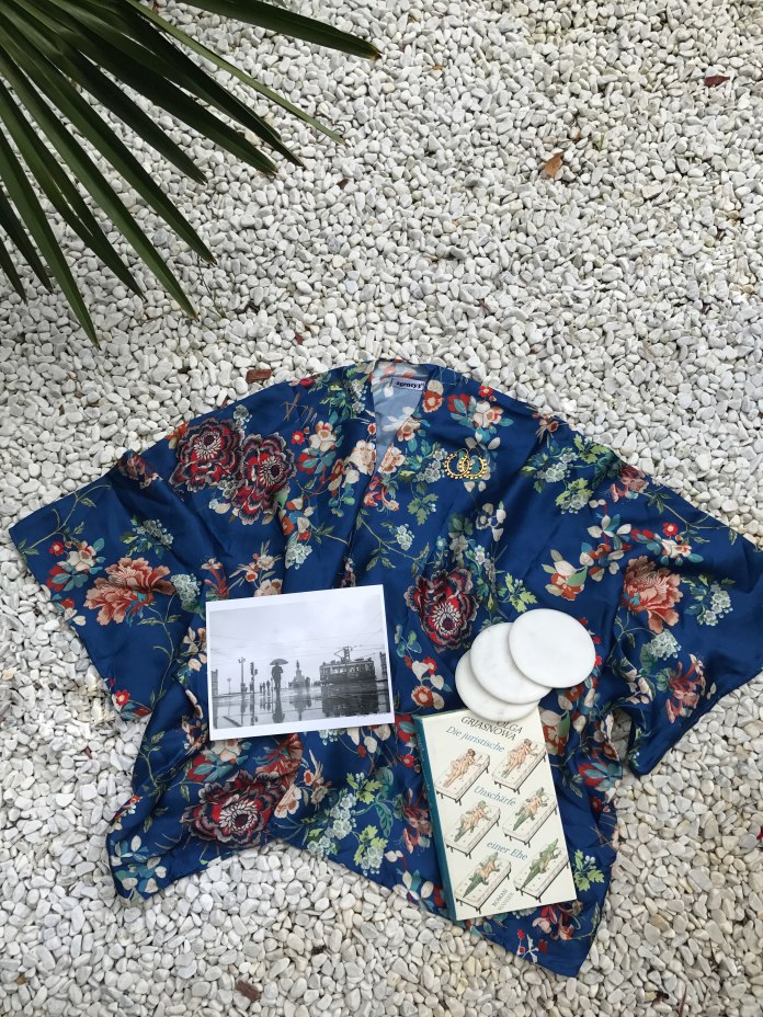 Ich trage mich schon lange mit dem Gedanken herum, mir einen Kimono zuzulegen. Und ich hatte auch schon ein paar Exemplare, wie z.B. dieses hier, im Warenkorb liegen. Nun bin ich natürlich umso glücklicher, dass ich mich in Geduld geübt habe, was nämlich eigentlich überhaupt nicht zu meinen Stärken zählt. Denn jetzt bin ich stolze Besitzerin eines handgefertigten Unikats, das sich nicht nur ganz toll anfühlt, sondern mich auch immer an Lissabon erinnern wird. Jippie!