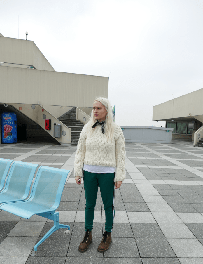 Pullover: Fortezza Sweater von We are knitters // Halstuch: Secondhand // Hose: SisterS Point // Schuhe: Dr. Martens