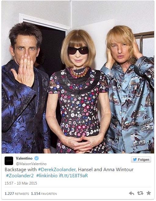 Logisch, dass es sich hier um eine PR-Aktion handelt und die beiden Schauspieler den Laufsteg zur (Marketing-)Bühne für den zweiten Teil von „Zoolander“ machten. Aber Werbung kann eben auch gelungen sein. Mich brachte dieses Video heute morgen in jedem Fall sehr zum Schmunzeln. Und selbst Vogue-Chefin Anna Wintour, die nicht gerade dafür bekannt ist, in der Öffentlichkeit Emotionen zu zeigen, schien sich über diesen Coup zu amüsieren.