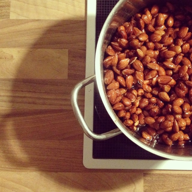… gebrannte Mandeln. Jawohl! Und das im Sommer. Es war Freitagabend, draußen goß es aus Eimern und mich überkam ein Heißhunger. Manchmal muss man zu extremen Maßnahmen greifen / (Bei Bedarf verrate ich Euch gerne das Rezept?!)